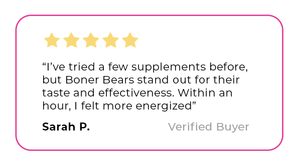 Olvídate de rutinas complicadas y soluciones engorrosas: los Boner Bears son tan fáciles como efectivos. Solo toma uno y deja que su potente fórmula totalmente natural haga el resto. Es una forma sencilla y discreta de mejorar tu intimidad sin perder el ritmo.